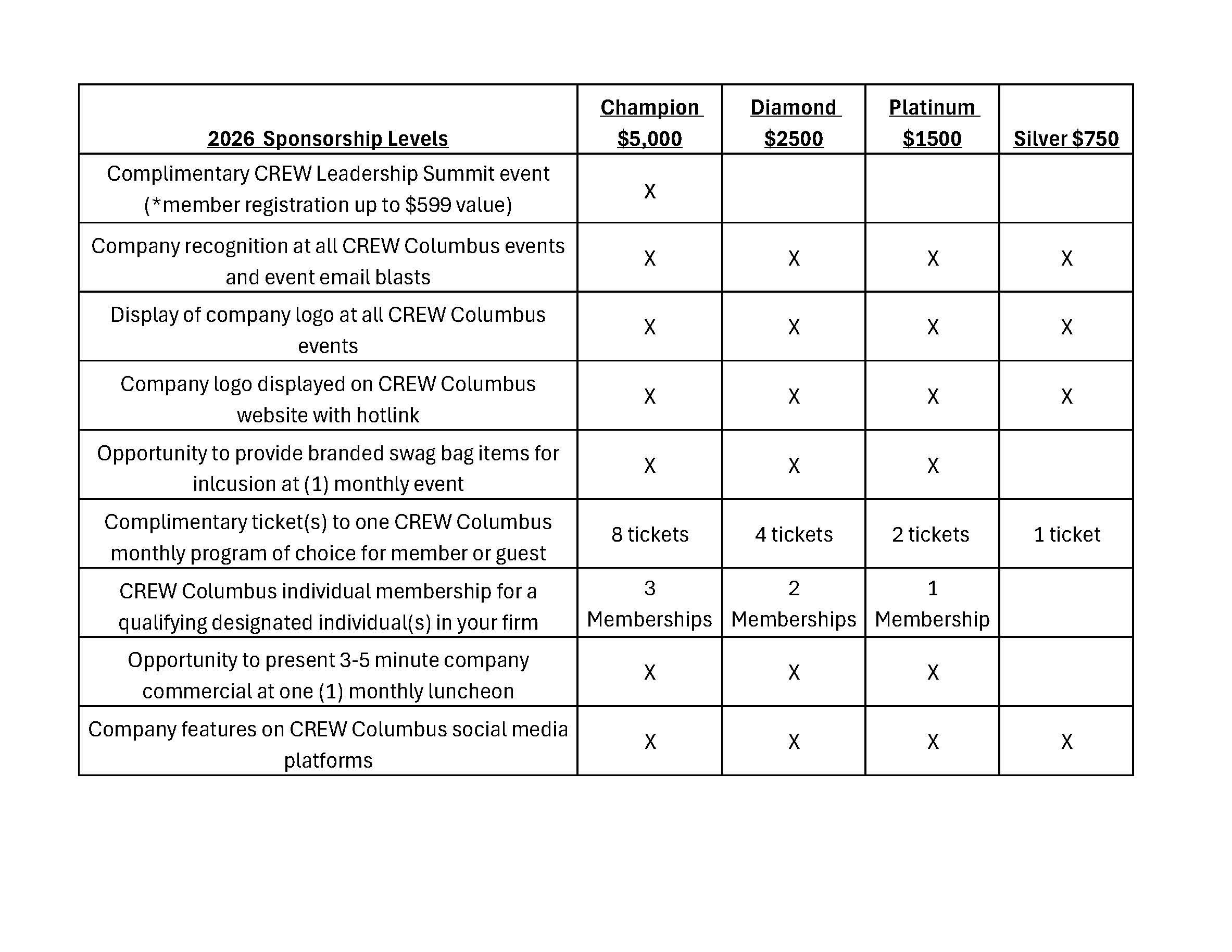 CREW Columbus sponsorship provides ongoing visibility to our members and guests throughout the sponsorship year. As our chapter membership continues to grow, so do the benefits of your sponsorship! The earlier your sponsorship is finalized, the more recognition and exposure your organization can receive throughout the year.